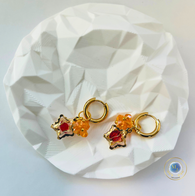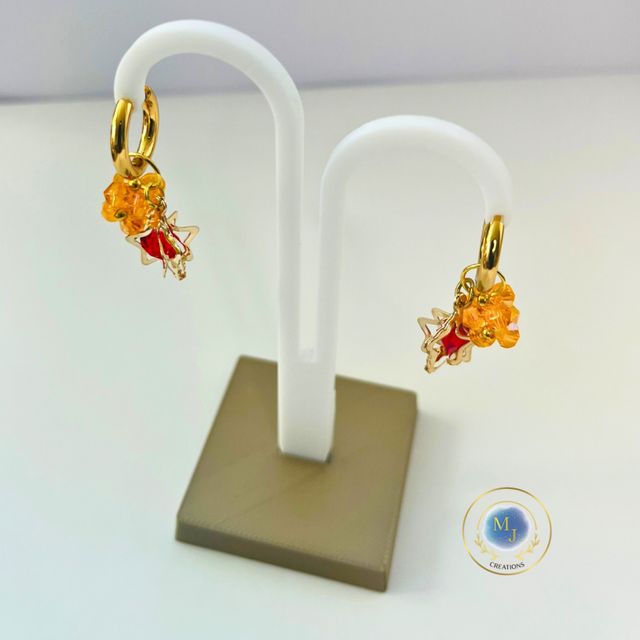 Handgemaakte Goudkleurige Ringoorbellen met Ster & Oranje Glaskralen | MJ Creations