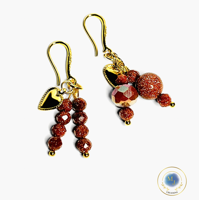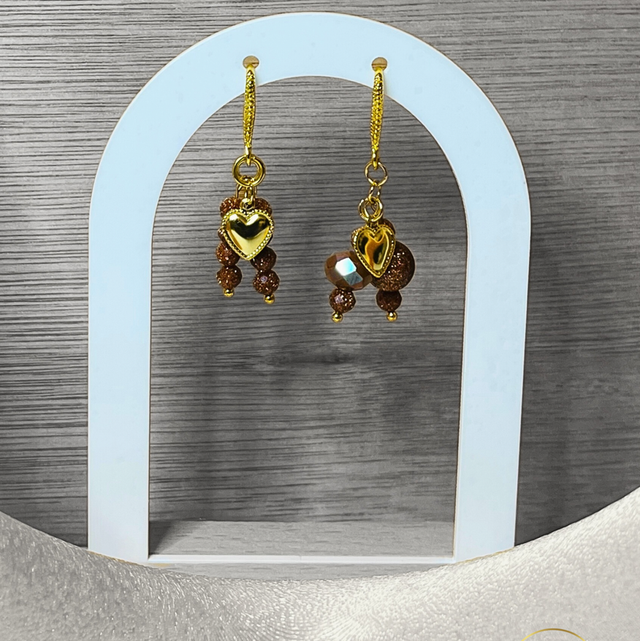 Handgemaakte Oorbellen met Goudbruine Natuursteen & Kristallen