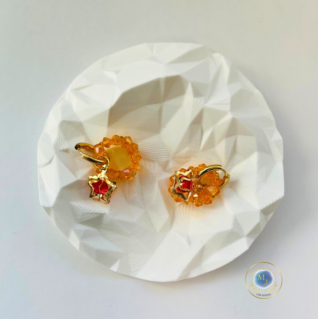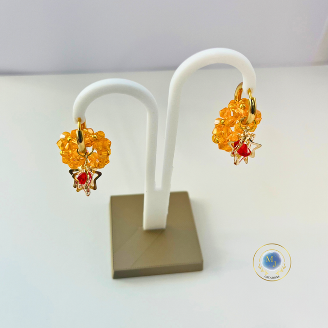 Handgemaakte Oranje Glaskralen Oorbellen met Goudkleurige Ster | MJ Creations