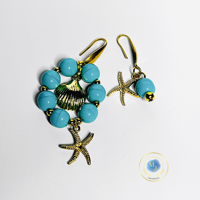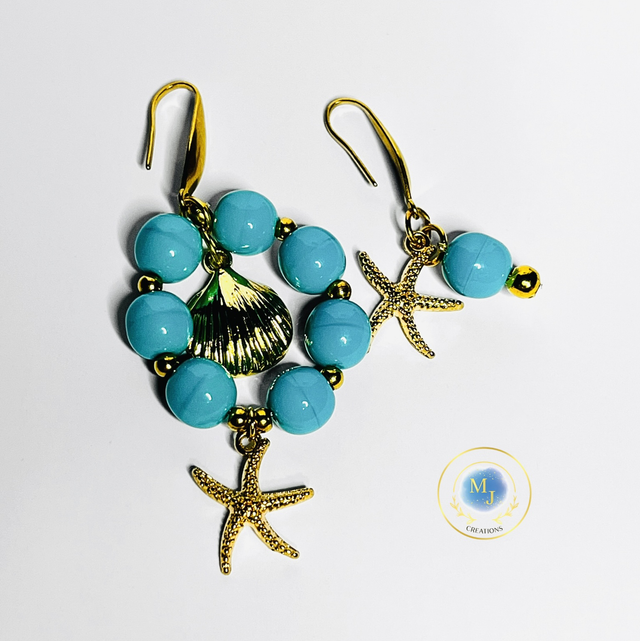 Handgemaakte Turquoise Oorbellen met Zeester & Goudkleurige Details