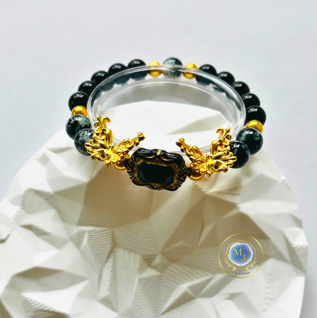 Royal Noir Elegance – Handgemaakte Luxe Armband met Gouden Accenten
